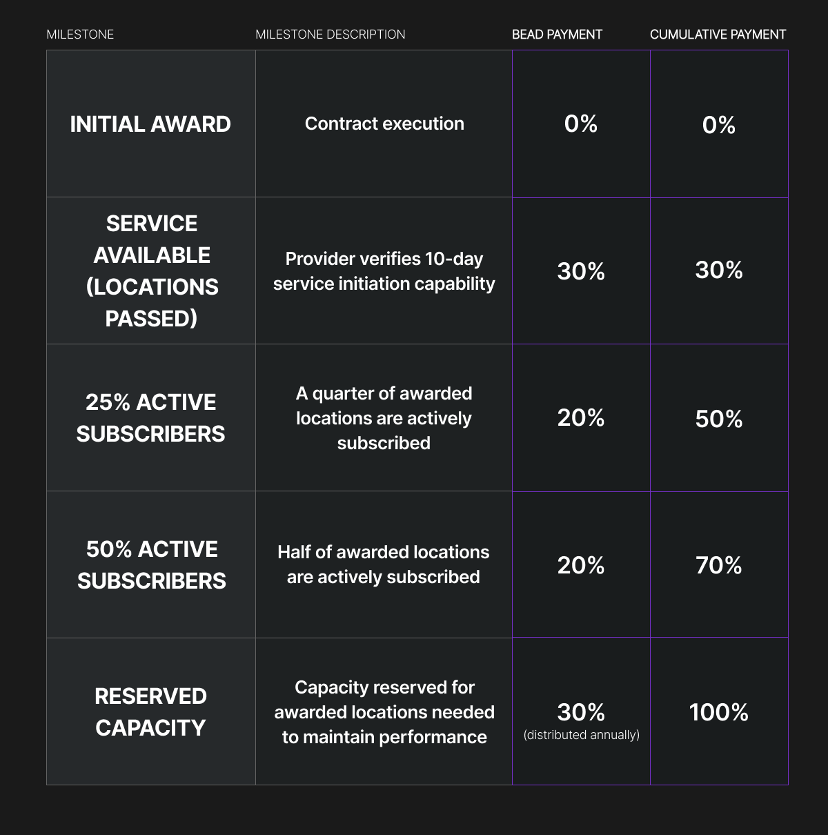 Practical Implementation for BEAD LEO Capacity SubgrantsThe ORBIT framework structures funding distribution in order to balance deployment acceleration alongside accountability by anchoring progress to milestone-based payments. Here's how ORBIT may work in practice: